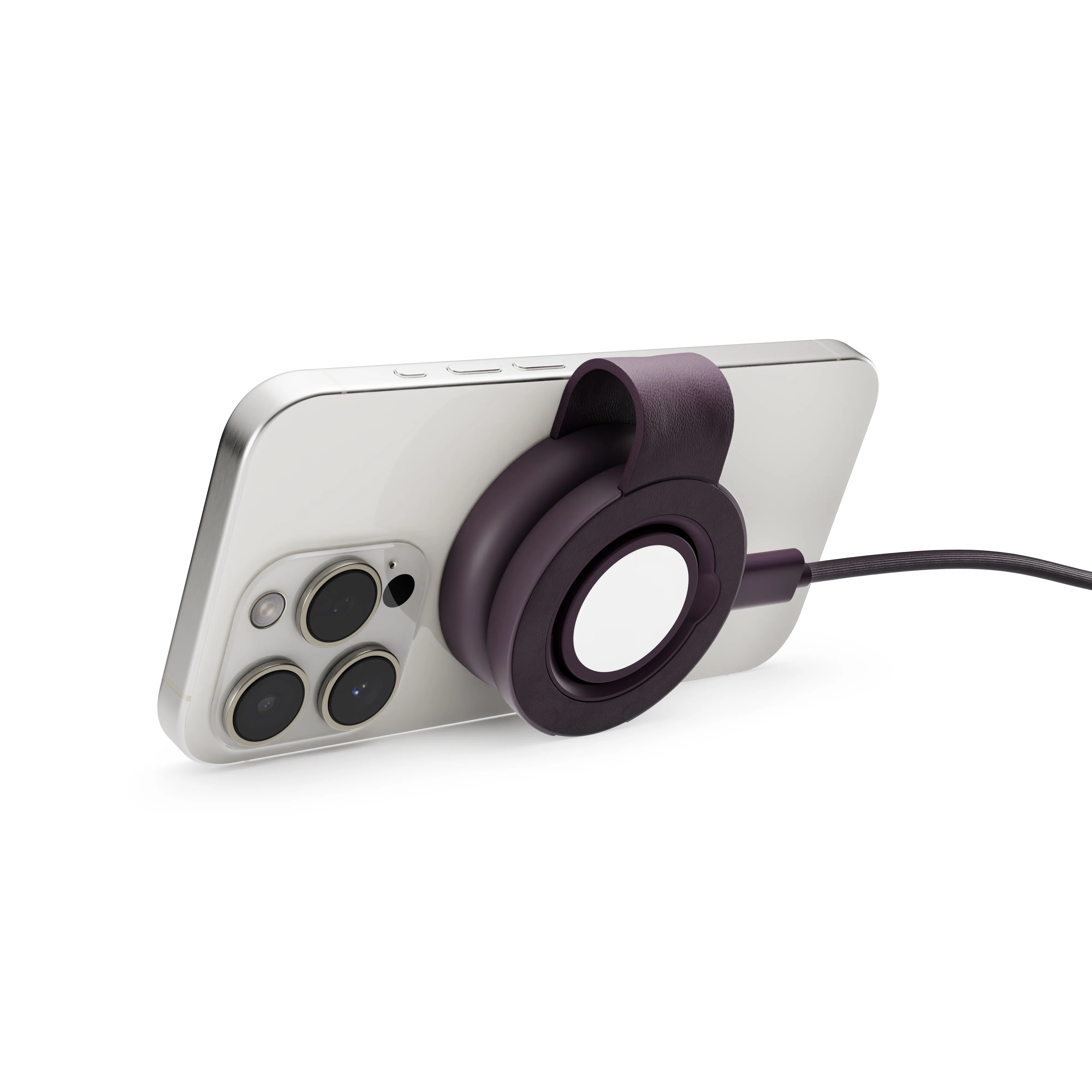Soft-touch, halkfri Midnight Plum-finish med färgmatchad flätad USB-C-kabel